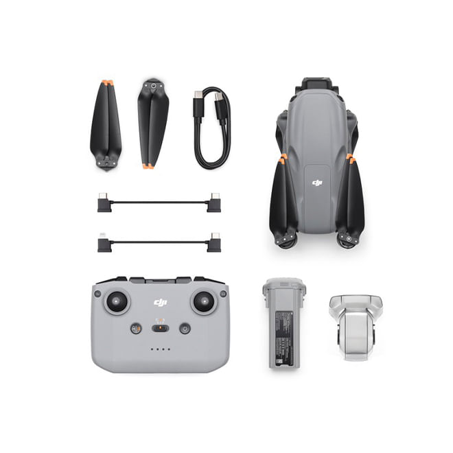 Incluye: × 1 DJI Air 3S - × 1 Control remoto DJI RC-N3 - × 1 Batería de vuelo inteligente - × 1 Hélices de repuesto (par) - × 1 Cable PD tipo C a tipo C - × 1 Cable RC (conector USB-C) - × 1 Cable RC (conector Lightning) - × 1 Protector de cardán