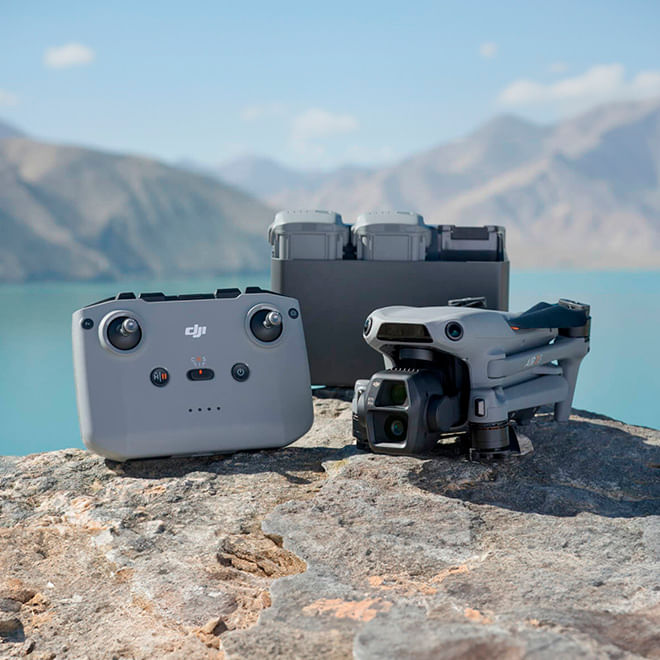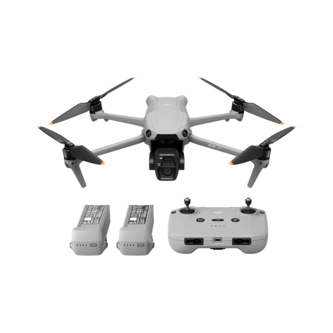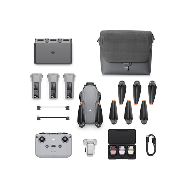 Incluye: ×1 DJI Air 3S - ×1 Control remoto DJI RC-N3 - ×3 Baterías de vuelo inteligentes - ×1 Centro de carga de baterías - ×1 Set de filtros ND (ND8/32/128) - ×1 Bolso de hombro DJI - ×3 Hélices de repuesto (par) - ×1 Cable Type-C a Type-C PD - ×1 Cable RC (conector USB-C) - ×1 Cable RC (conector Lightning) - ×1 Protector del gimbal