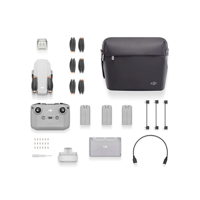 Incluye: ×1 DJI Mini 4K - ×1 Control remoto DJI RC-N1C - ×3 Baterías de vuelo inteligentes DJI Mini 2 - ×3 Hélices de repuesto (par) - ×1 Cable DJI RC-N1 (conector USB-C) - ×1 Cable DJI RC-N1 (conector Lightning) - ×1 Cable DJI RC-N1 (conector Micro-USB estándar) - ×1 Protector del gimbal - ×1 Cable de datos USB-C - ×18 Tornillos de repuesto - ×1 Destornillador - ×1 Sujetador de hélices - ×1 Centro de carga bidireccional DJI Mini 2 - ×1 Bolso de hombro
