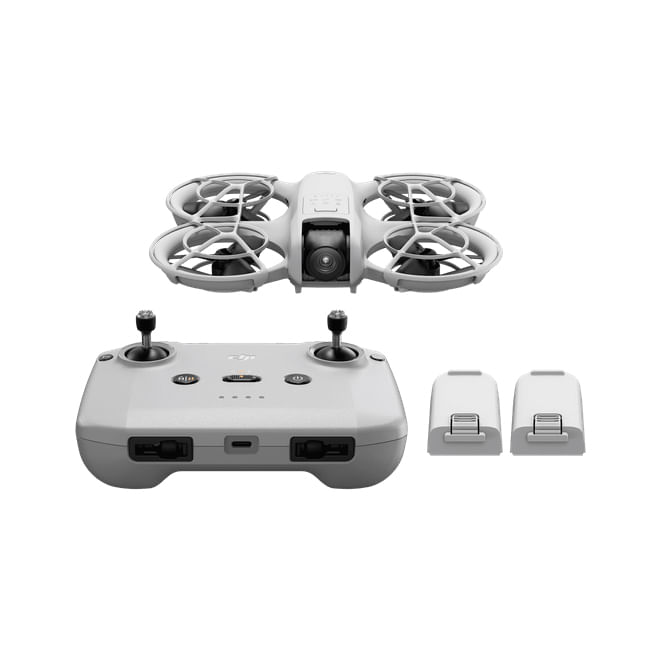 Incluye: ×1 DJI Neo - ×3 Baterías de vuelo inteligentes - ×1 Control remoto DJI RC-N3 - ×1 Cable RC (conector USB-C) - ×1 Centro de carga bidireccional - ×1 Protector de hélices (par) - ×1 Hélices de repuesto (par) - ×1 Protector del gimbal - ×1 Cable Type-C a Type-C PD - ×1 Destornillador - ×1 Tornillo de hélice de repuesto