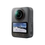 Se describe así: cámara 360° compacta con sensor tipo 1″, grabación 8K nativa, fotos 360° de 120 MP, vídeo 4K a 120 fps en modo boost, estabilización avanzada, perfil 10-bit + D-Log M, y sistema de montaje rápido magnético y resistente al agua.