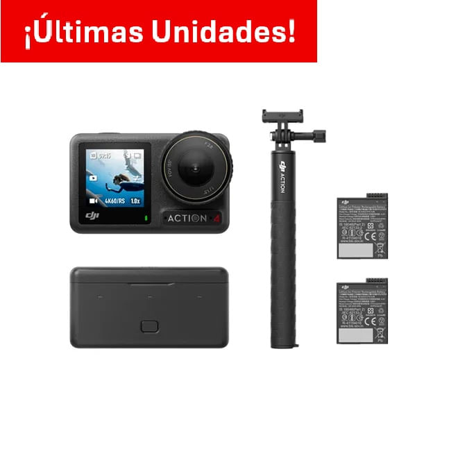 El Osmo Action 4 Adventure Combo ofrece grabación 4K/120fps, sensor de 1/1.3” para mayor detalle en baja luz, estabilización RockSteady 3.0, diseño sumergible hasta 18 m sin carcasa y batería de larga duración. Ideal para aventuras extremas con montaje versátil, pantalla dual y rendimiento profesional en cualquier entorno.