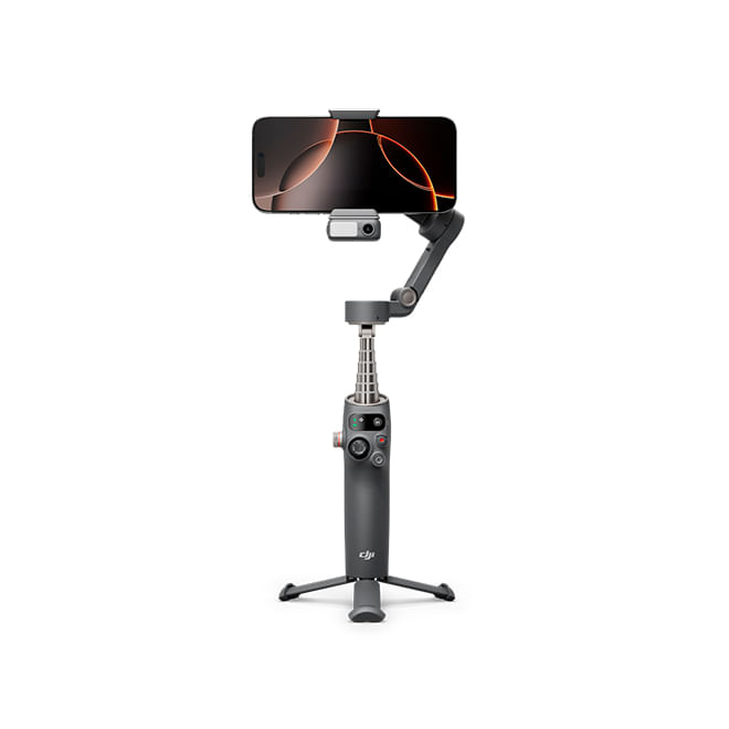 DJI Osmo Mobile 7P — Estabilizador de smartphone compacto con 3 ejes, trípode y varilla extensible integrados. Su módulo multifuncional permite seguimiento inteligente (ActiveTrack 7.0), luz de relleno ajustable y entrada de audio. Diseño plegable, fácil montaje magnético y autonomía de hasta 10 horas. Perfecto para grabar video fluido, selfies amplios o contenido profesional sin equipo extra.